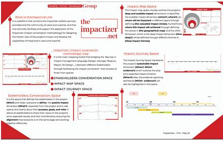 The Impactizer Map serves as your ultimate guide to understanding and visualizing impact. It provides a clear and structured framework to help users identify, measure, and enhance the outcomes of their projects or initiatives. By mapping goals, strategies, and results, this tool is ideal for anyone looking to align their efforts with measurable impact while fostering sustainability and growth.